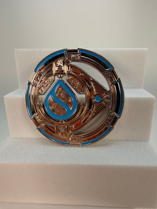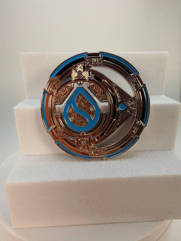 Each coin is crafted from high-density iron for a solid, premium weight. It’s then coated with a thin copper layer, allowing us to apply a custom finish that gives the coin its signature shine and durability.